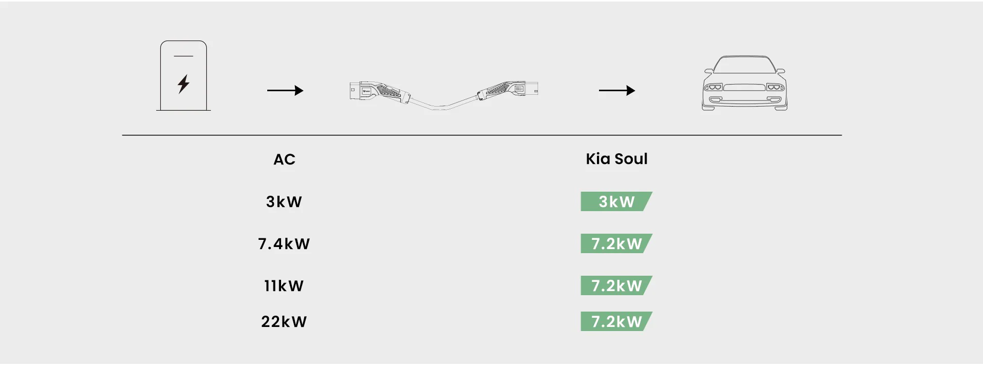 การจำลองกรณีนี้สามารถเกิดขึ้นได้ในขณะที่ขับรถ Kia Soul EV 39.2 kWh ตรวจสอบความจุปกติ 42 kWh และนี่คือการจัดเก็บข้อมูล AC สูงสุด 7.2 kW ระบบควบคุม EV 11 kW หรือเครื่องตรวจสอบ EV 22 kWh ฟังก์ชั่นการชาร์จแต่สุดท้ายแล้วทำให้ไฟเพียง 7.2 kW เท่านั้น